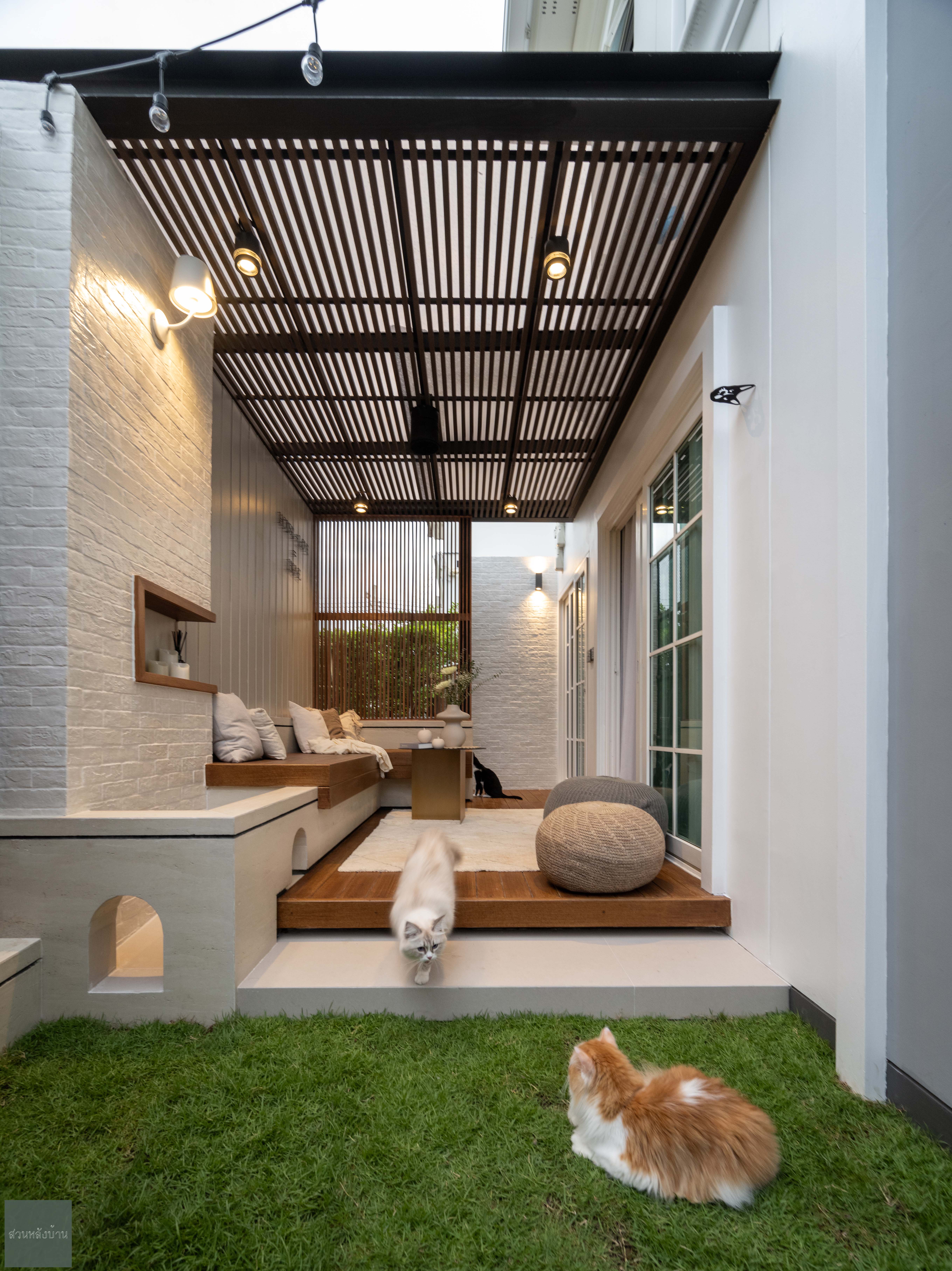 การได้สัมผัสธรรมชาติ สูดกลิ่นหญ้า รับลมเบาๆ และแดดอ่อนๆ เป็นโจทย์หลักที่เจ้าของบ้านตั้งไว้ให้กับเจ้าแมวน้อย5ตัว ที่ตั้งใจจะให้แมวได้ออกมาใช้ชีวิตภายนอกบ้านด้วยกัน โดยไม่ต้องใส่สายจูง ได้วิ่งได้สำรวจ ลดความเครียด