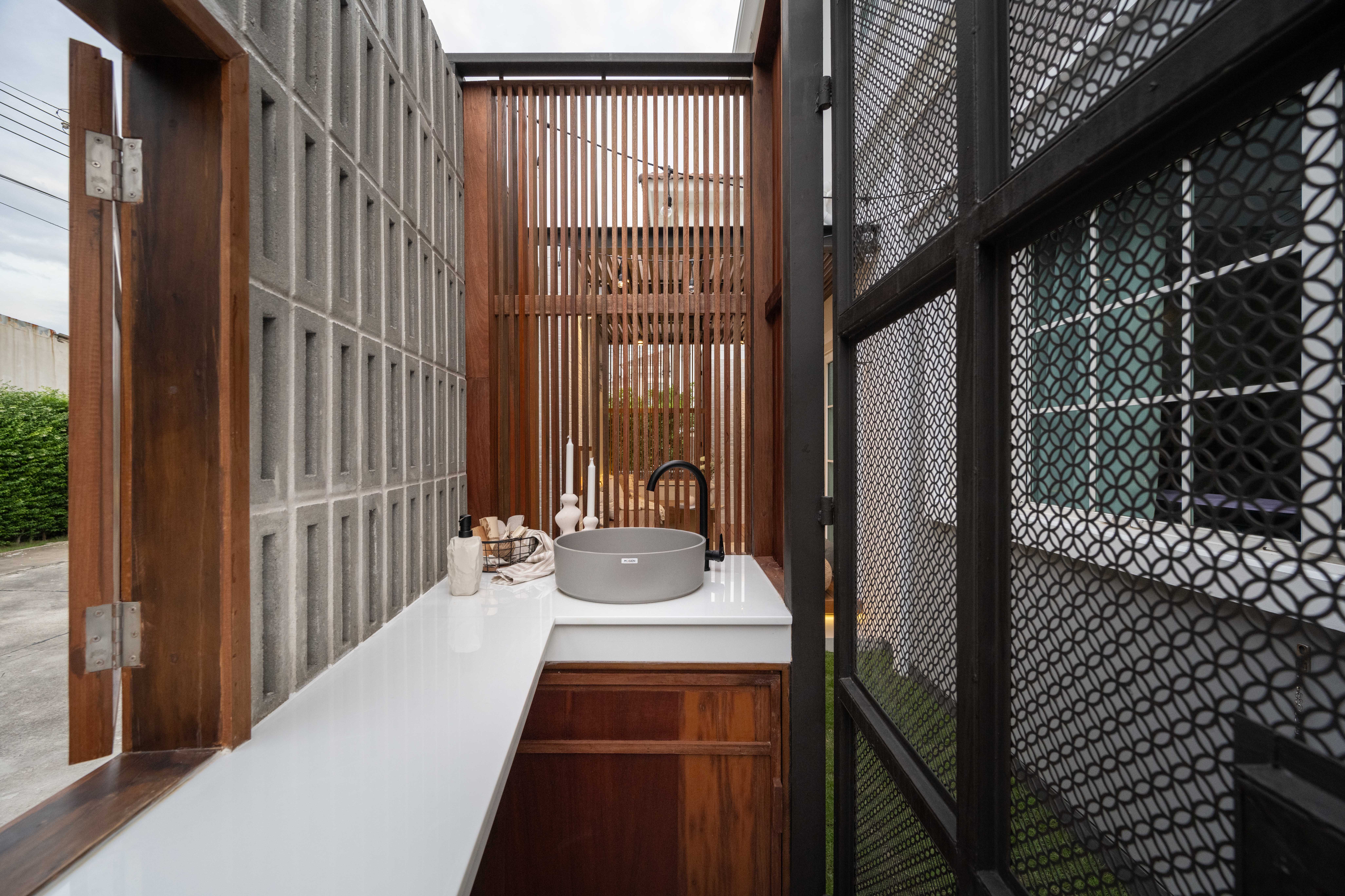 สำหรับใช้พักผ่อนแบบต่างๆ ทั้งรับแขก ทานข้าว หรือโต๊ะเคาท์เตอร์ทำงาน ถูกกำหนดความเป็นส่วนตัวด้วยบานหน้าต่างไม้ สามารถเปิดปิดตามความต้องการ กลิ่นอายของไม้ทำให้งานดูอบอุ่น ให้ความรู้สึกเป็นกันเอง อ่อนน้อมกับธรรมชาติ