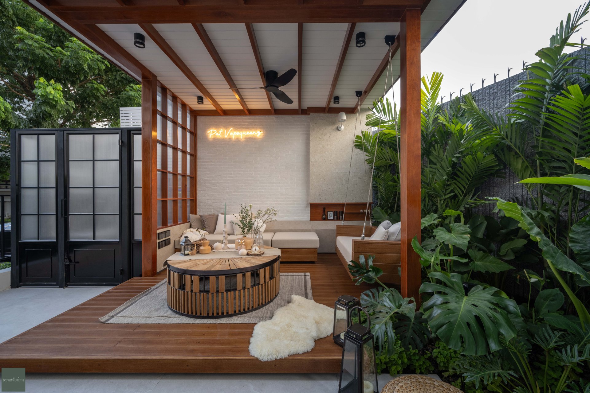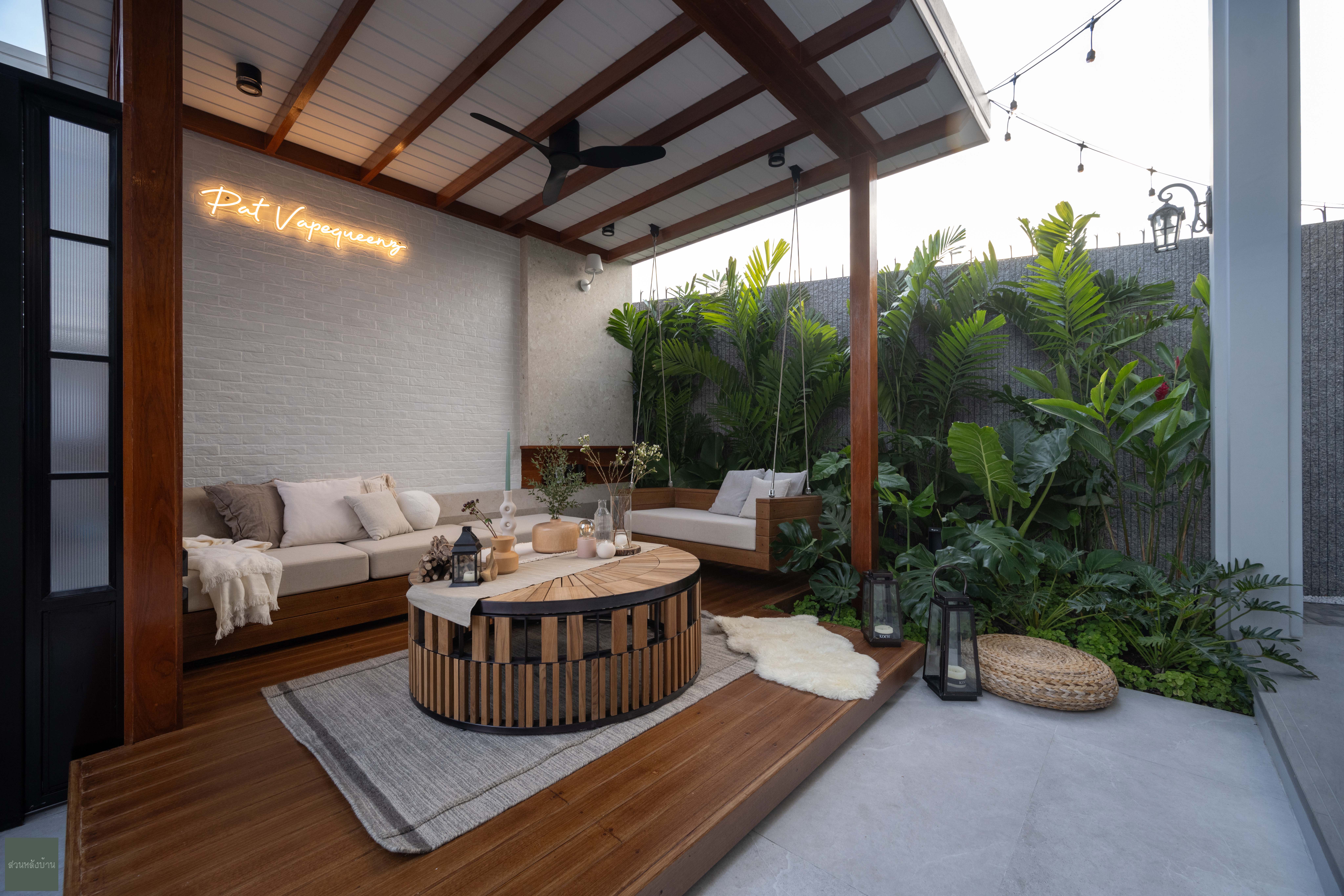 เป็นอีกโปรเจคที่เราเพิ่มพื้นที่สีเขียวให้กับบ้านแต่ไม่เพิ่มภาระในการดูแลตัดแต่งสวนเพราะเราจำกัดพื้นที่ปลูกให้มีเฉพาะในส่วนที่สามารถดูแลได้อย่างทั่วถึง เหมาะกับการออกมาใช้งานหรือพักผ่อนในวันว่างๆเหมือนได้เที่ยวรีสอร์ททุกวัน.