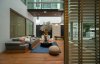 พื้นที่ที่นั่งทำงานเมื่ออยู่ในบ้านมองผ่านหน้าต่างออกมาบางครั้งจะปะทะสายตากับเพื่อนบ้าน ทำให้ไม่ค่อยเป็นส่วนตัว เราเลยทำผนังตกแต่งขึ้นมาเพิ่มความเป็นส่วนตัวให้ยาวตลอดทั้งแนว และเน้นในส่วนที่จะวางต้นโอลีฟให้มีความโดดเด่นกว่าผนังส่วนอื่น