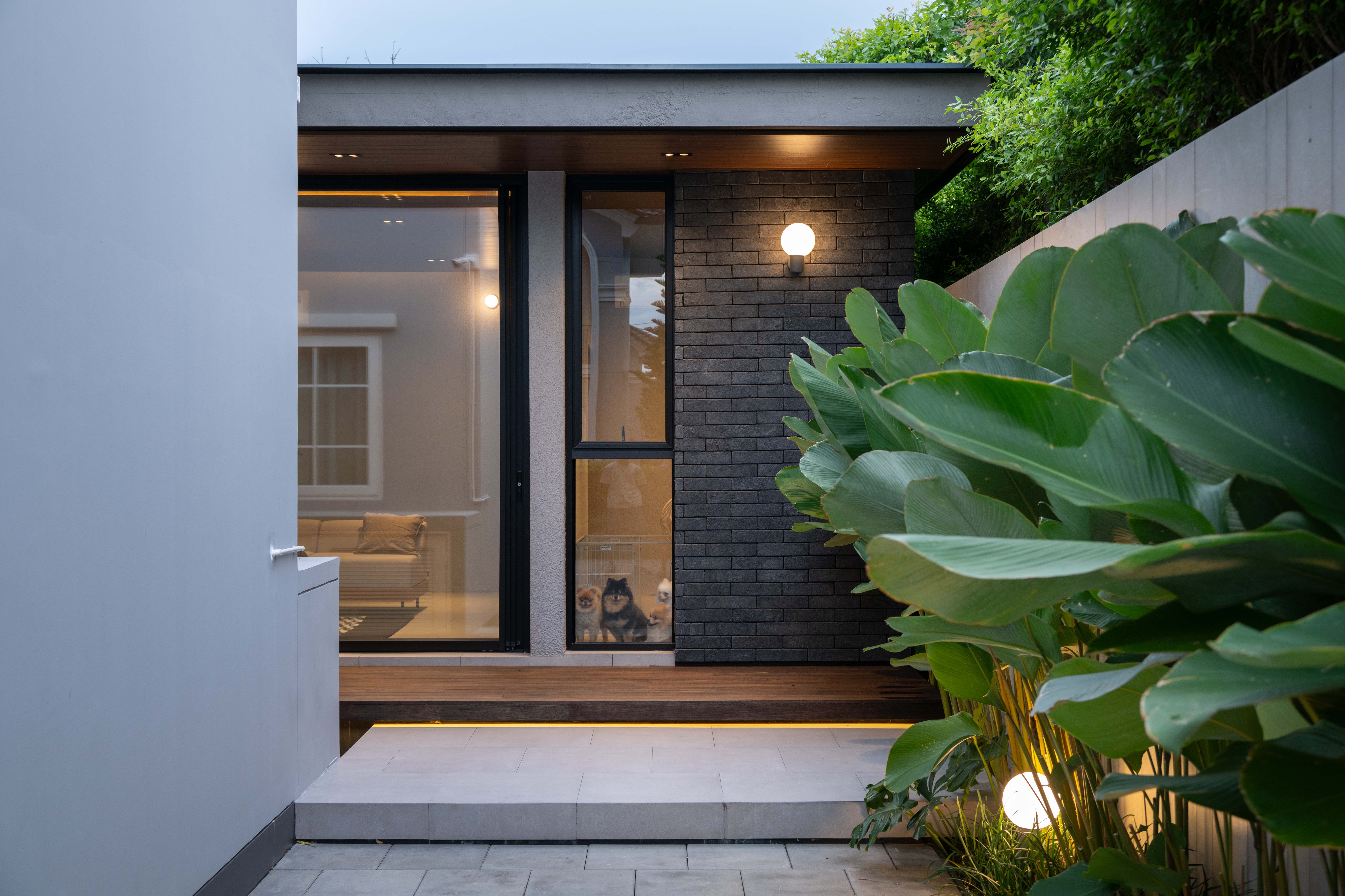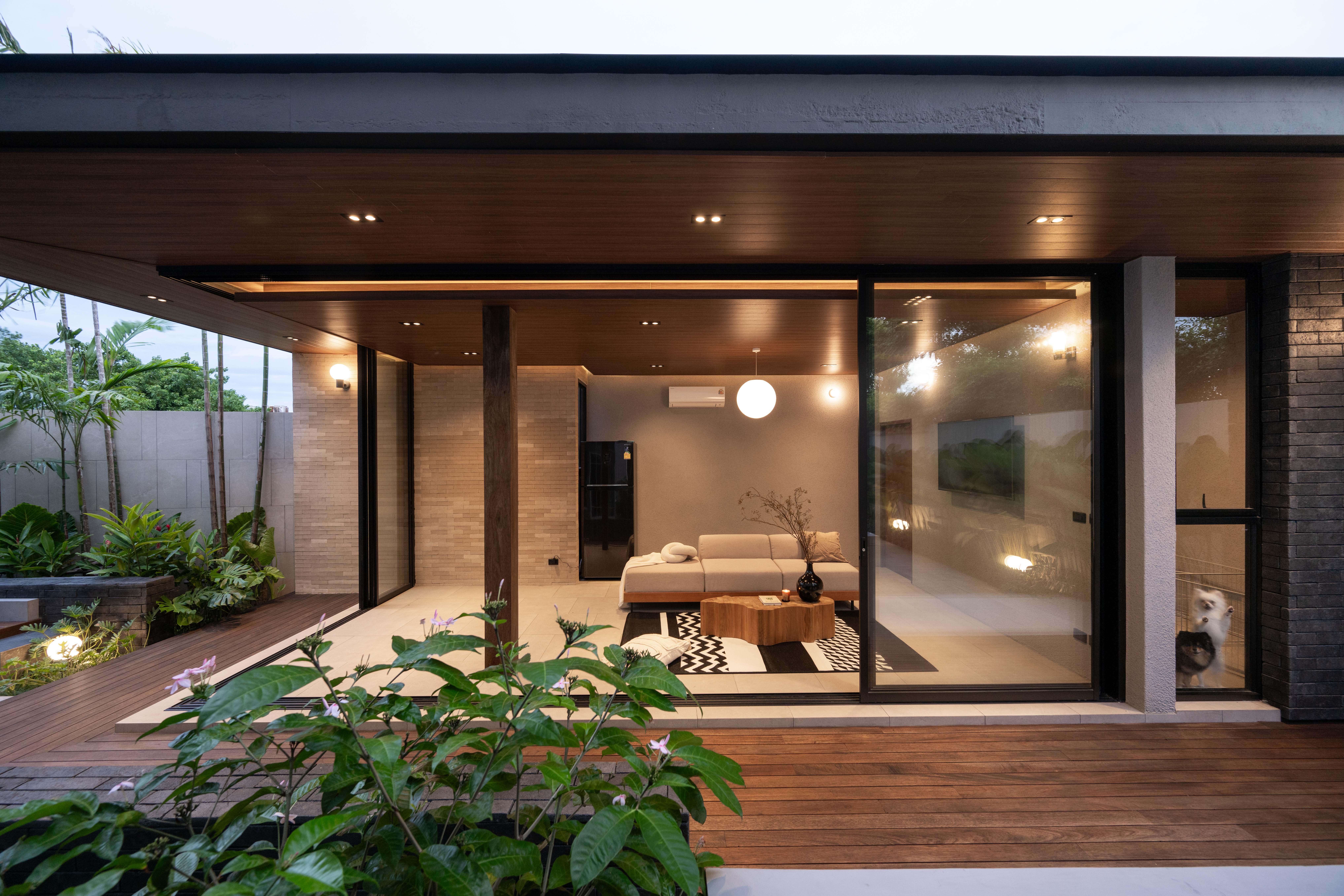 โจทย์เริ่มต้นของหลังนี้ คล้ายกับทุกหลังที่ต้องการใช้ประโยชน์พื้นที่หลังบ้านอย่างเต็มที่ แต่ความต้องการพิเศษอีกอย่างหนึ่งคือ อยากให้มีห้องสำหรับน้องหมา เวลาไม่อยู่บ้าน ก็จะให้น้องหมาได้เข้ามาพักในห้อง เพื่อจำกัดการดูแลสัตว์เลี้ยง ส่วนตัวห้องก็อยากให้เป็นห้องอเนกประสงค์ ทั้งทานข้าว นั่งดูทีวี หรือปาร์ตี้ก็ได้ เน้นการดูแลที่ไม่ต้องจุกจิก