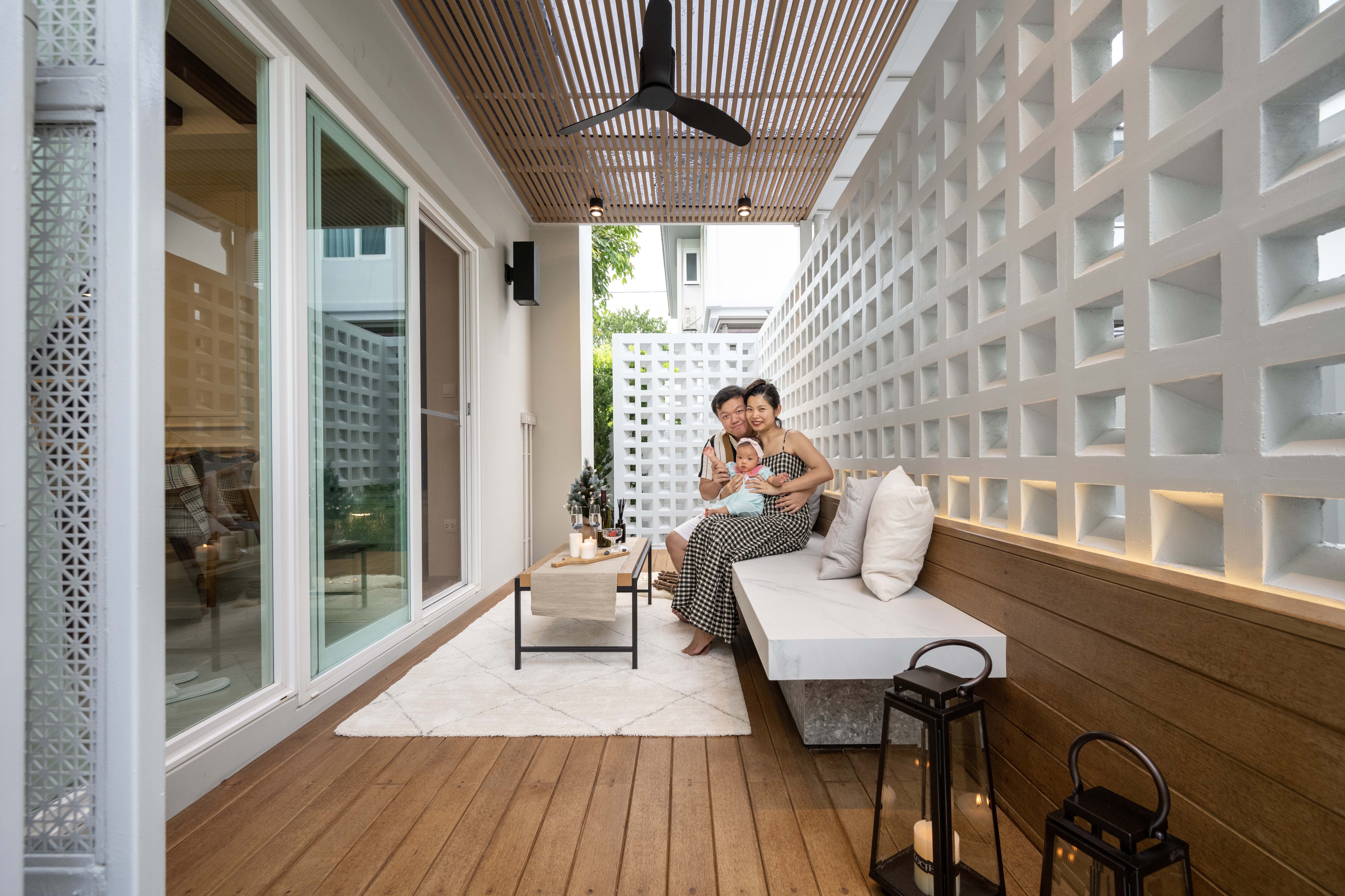 Our terrace is connected to the indoor function, the fixed bench that faces into the indoor link the activities from inside to outside by opening the door.