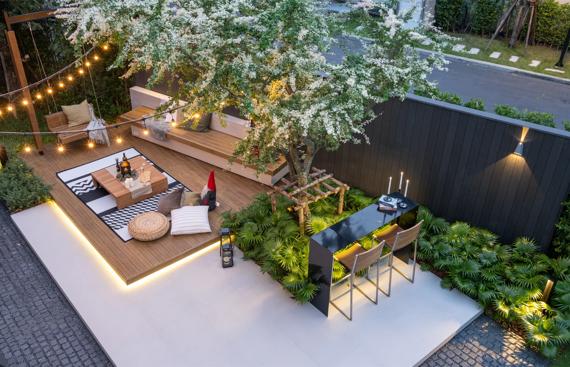 ไม่ใช่แค่สวยงาม แต่เป็นพื้นที่ที่จะอยู่คู่กับบ้านไปอีกนาน ลานโล่งที่เปิดกว้าง ใต้ต้นมะขามเทศด่าง อีกหนึ่งพื้นที่ต่อขยายความสุข ให้ครอบครัวได้ใช้เวลาร่วมกัน