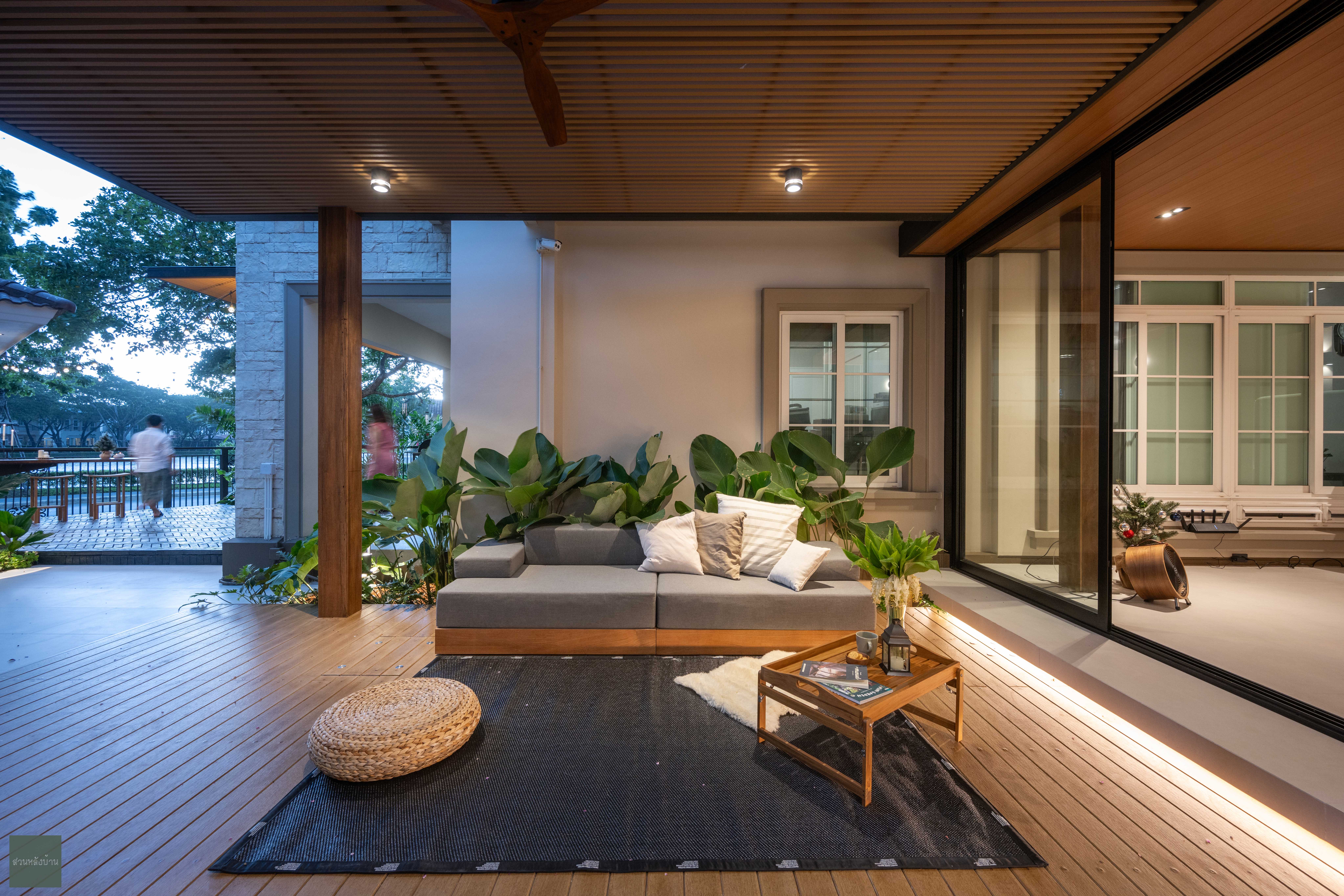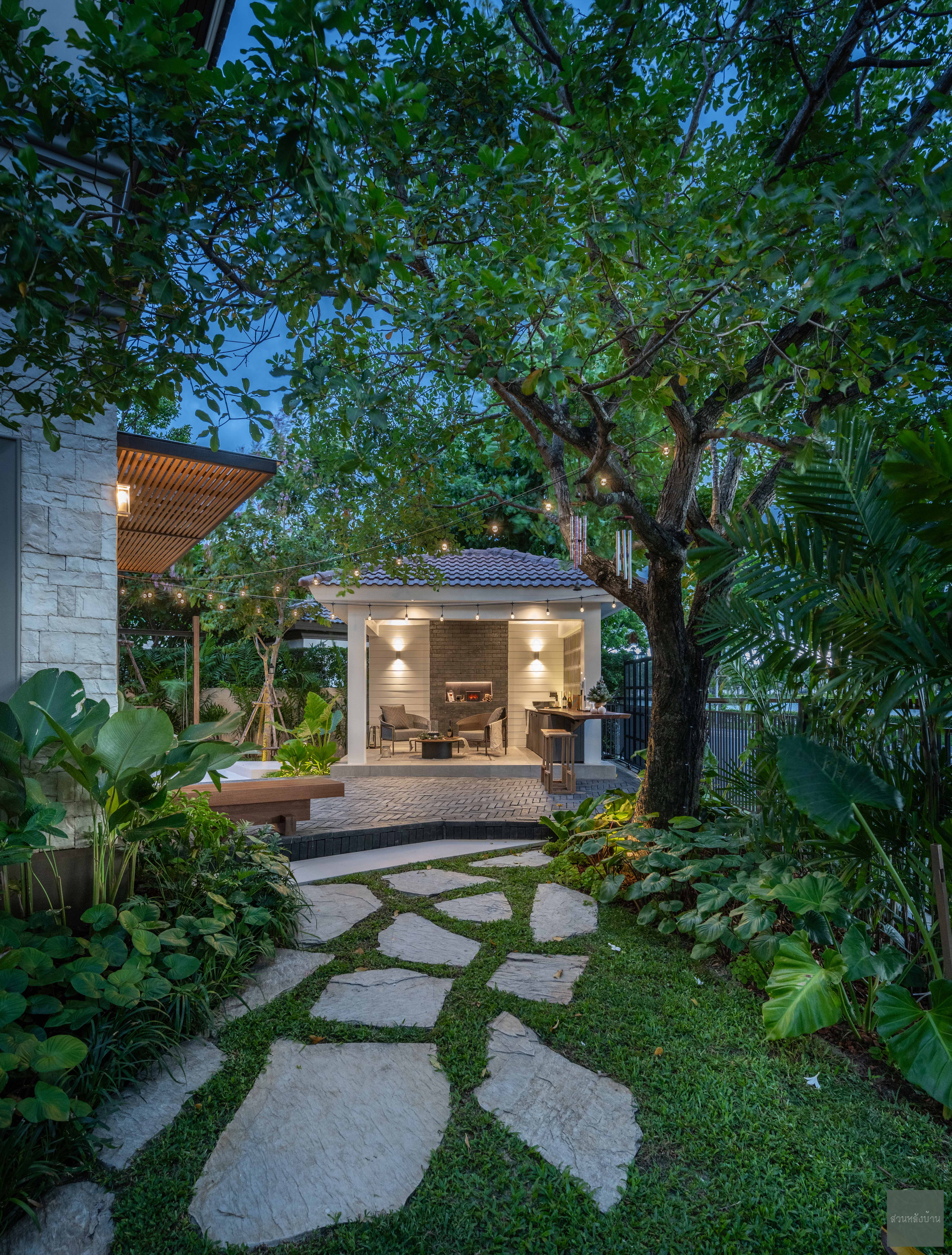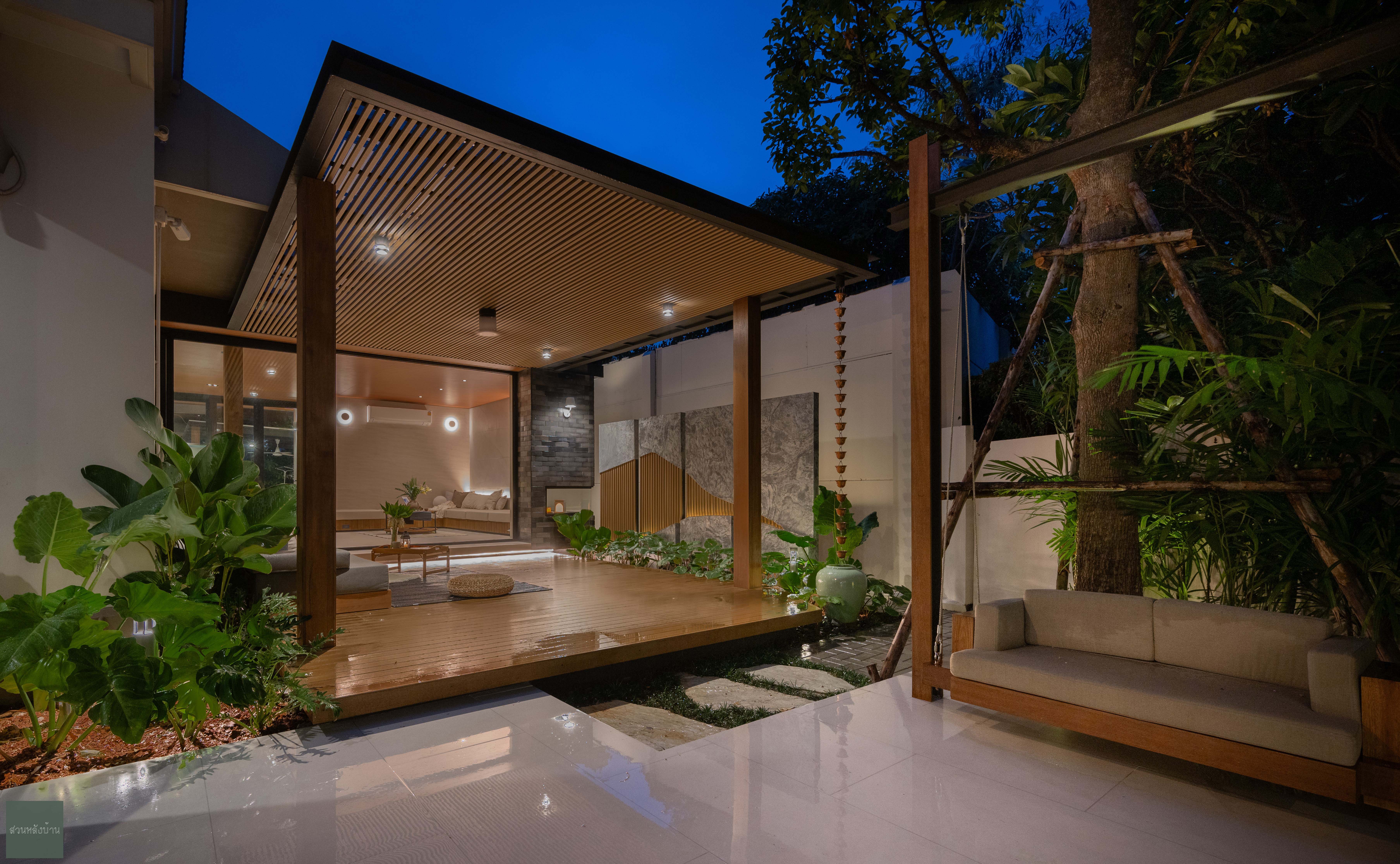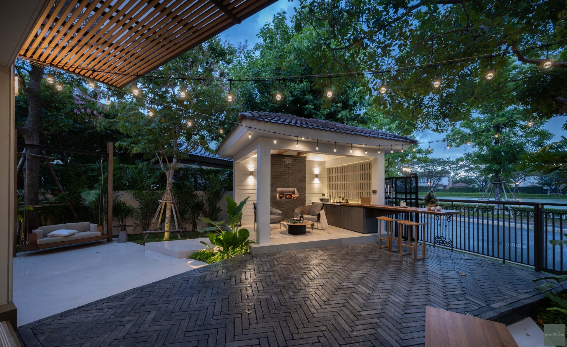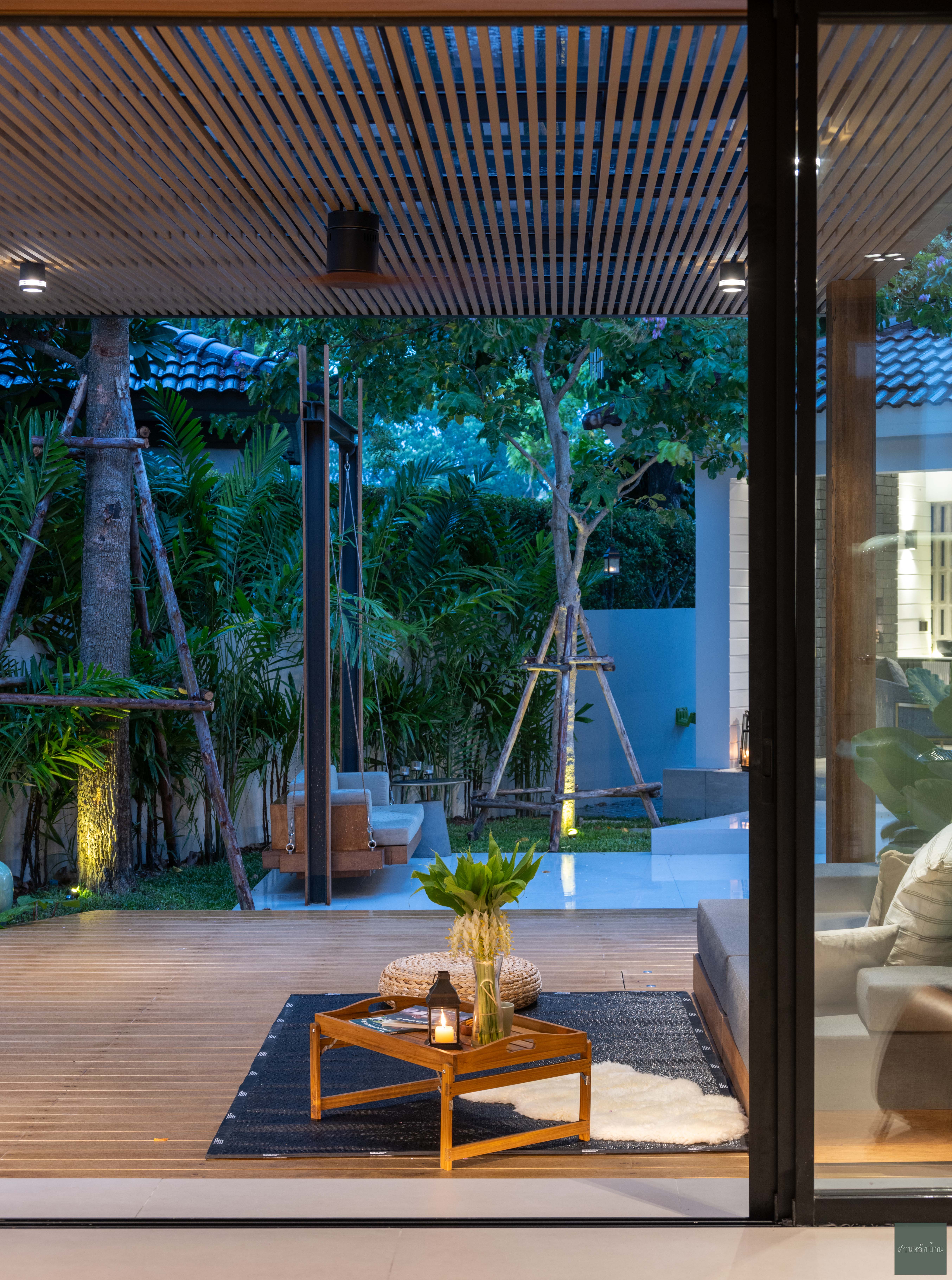 พื้นที่กลางแจ้งที่ใช้งานได้จริง มีพื้นที่สำหรับครอบครัวให้ได้พักผ่อน มองเห็นกันหมดตั้งแต่หน้าบ้านไปหลังบ้าน ครอบคลุมทุกกิจกรรม ได้ใกล้ชิดธรรมชาติในแบบที่ไปด้วยกันได้กับไลฟ์สไตล์