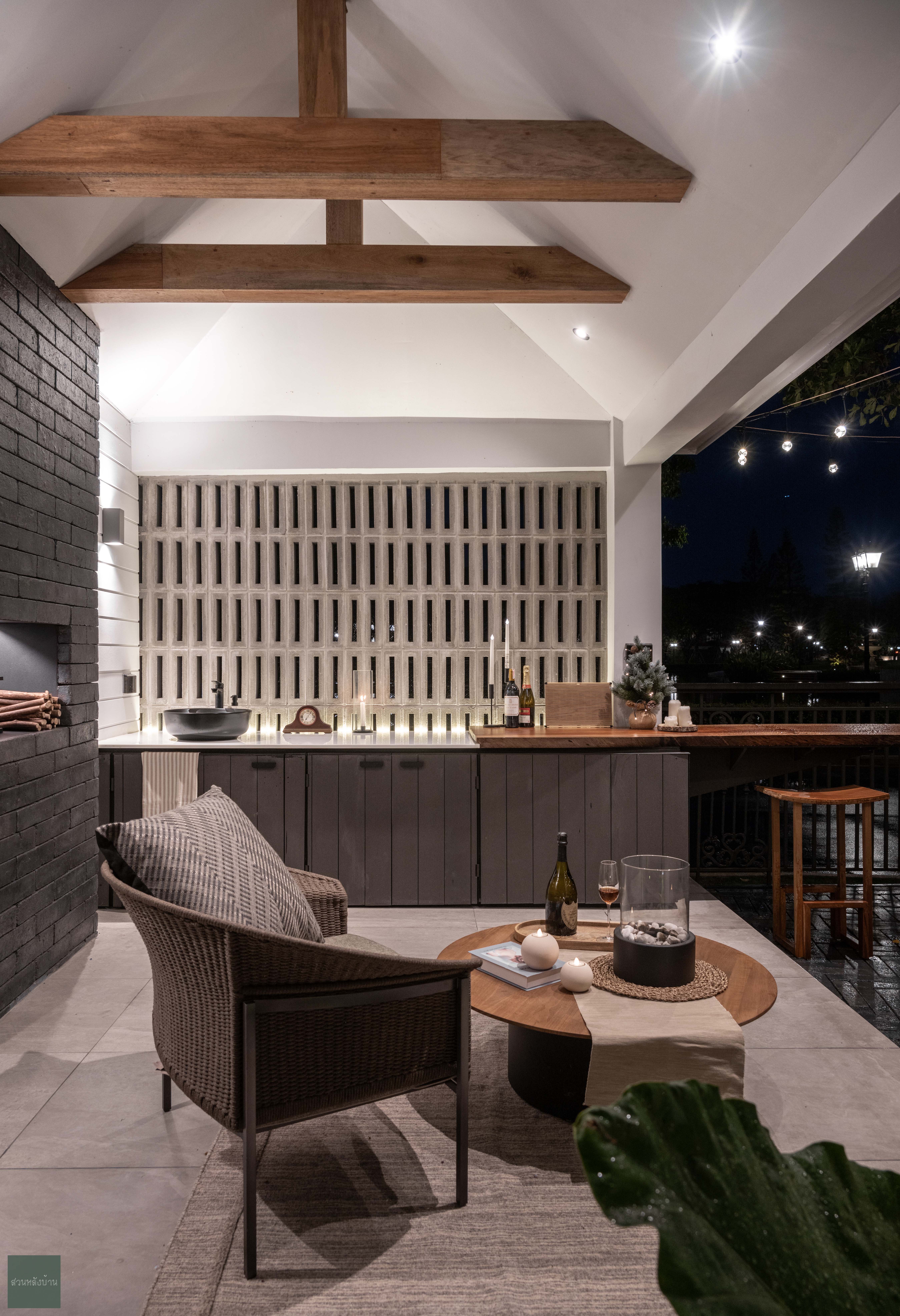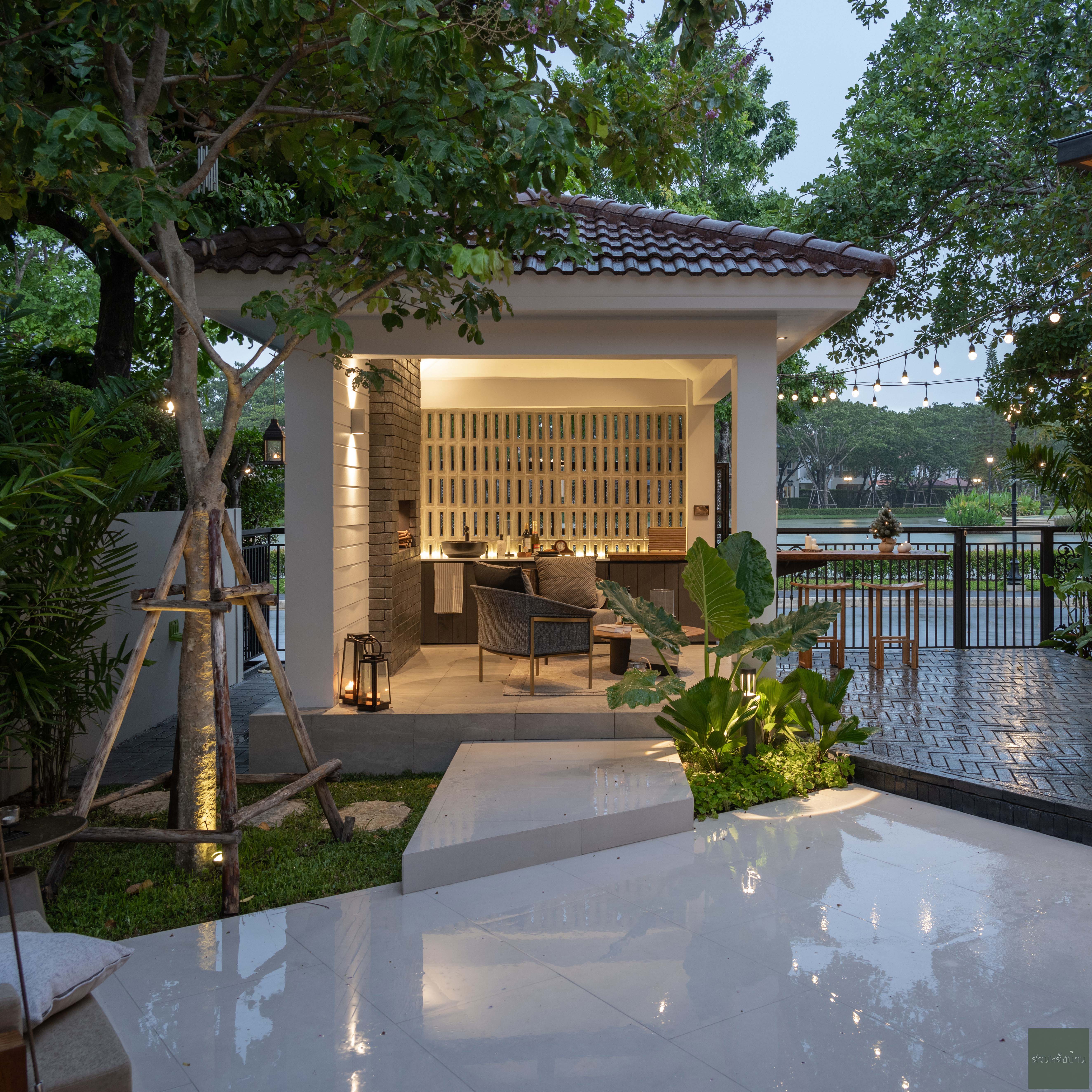 ศาลาโปร่งสำหรับรับแขกมีพื้นที่เอื้อให้กับการทำอาหารเบาๆกับเตาบาบีคิว เผื่อตอนจัดปาร์ตี้